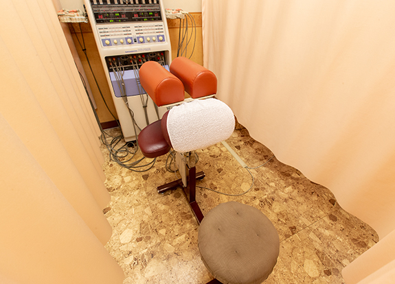 施術ベッドはこの1台のみで、ほかにも干渉低周波を用いて施術をする電気機器があります。