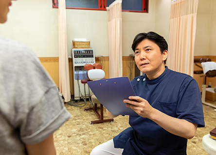 お客様の状態を正しく把握して、施術方針を決めます。施術内容や方針を詳しくご説明し、ご納得いただいてから施術を開始します。