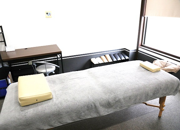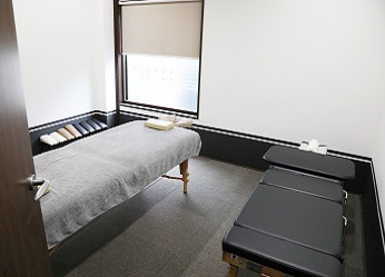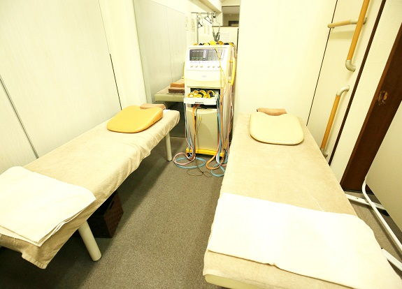 施術用ベッドは保険施術用に4台、自費施術用は個室制で2台ご用意していますので、人目を気にせず施術を受けられる環境になっております。