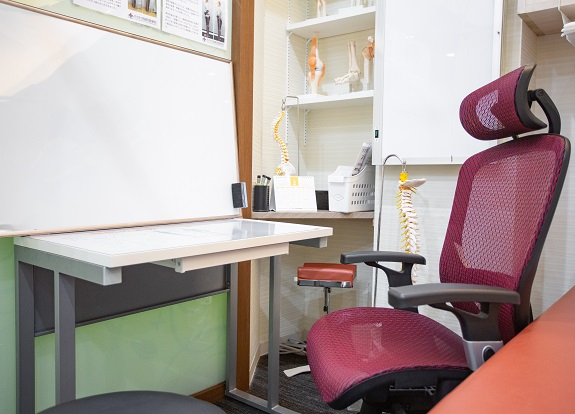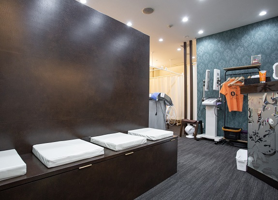 大阪梅田からも徒歩で行けるところに施設があります。アクセスが良いので、お仕事帰りの方にもおすすめです。お店がたくさん並んでいる中で、緑の看板が目立つので、施設をすぐに見つけることができます。店内はベッドが7台とたくさんあり、清潔感があります。取材中、スタッフ同士がお気軽にお話されており、仲の良さが伝わりました。施術は骨格を調整して、調整した良い状態を保つのに必要なインナーマッスルを鍛えていく形です。「身体のお悩みはなんでも!」ということで、些細なことでもご相談に乗ってくれる親しみやすい先生です。