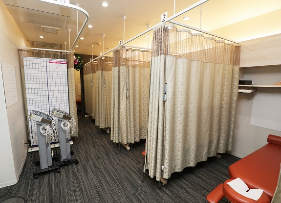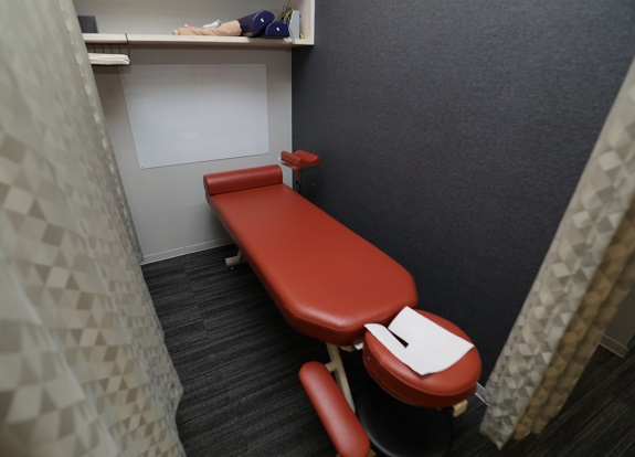 堺筋本町駅12番出入口から堺筋沿いを北へ、迷わず向かうことができました。店先にのぼりが出ていたため、遠目からでも場所が分かりました。店内を入るとすぐに受付があるため、スムーズに対応していただけます。スタッフさんが笑顔で迎えてくださるので、はじめての方でも緊張せずに来店することができるのではないでしょうか。店内はシンプルな白の壁に緑が装飾されていて清潔感が感じられる落ち着いた空間です。カウンセリングスペースは施術台のあるスペースの奥にあり、個室になっているため体の不調をしっかり伝えられるのも嬉しいポイント☆施術台は一つ一つがカーテンで仕切られるためリラックスして施術を受けることができると思います。