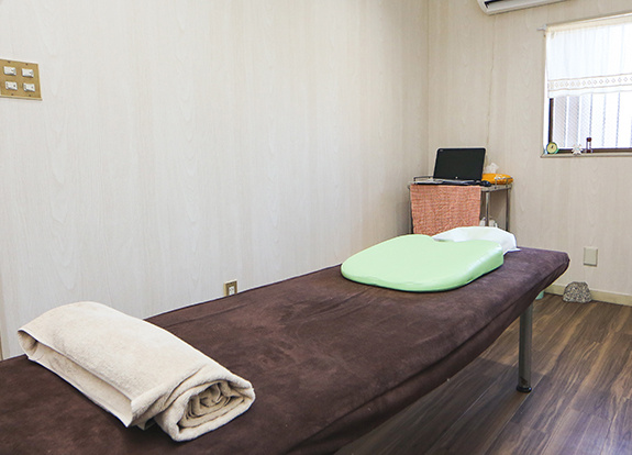 事前予約制となっており、個室で施術を行っています。ほかのお客様を気にすることなく、話しにくいお悩みもお気軽に打ち明けることができます。日常の喧騒から離れ、ゆったりとした気分でお過ごしいただくため、内装にもこだわりました。白い木目調の壁はカフェをイメージし、お客様がリラックスできる雰囲気づくりを意識しています。ご高齢の方や車いすでお越しの方にもお越しいただけるよう、入口部分には手すりを設置しています。ベビーカーが入れる場所も確保しておりますので、お子様連れの方も歓迎です。