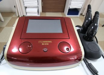 当施設では、スポーツ現場でも使用されている「コンビネーション刺激装置 EU-910」を設置しています。この機械では、超音波と電気刺激を組み合わせた施術が可能です。照射部位に対して2つの刺激を与えることで、施術の幅が広がります。痛さよりも心地よい刺激をともなうことが多いです。まだ世間ではあまり浸透していませんが、この機械を使用した施術後は身体の不調の緩和が期待できます。痛覚を刺激することなく筋肉を細胞レベルまでほぐすので再生組織を活性化させていきます。局所の不調でお悩みの方はぜひ一度お試しください。