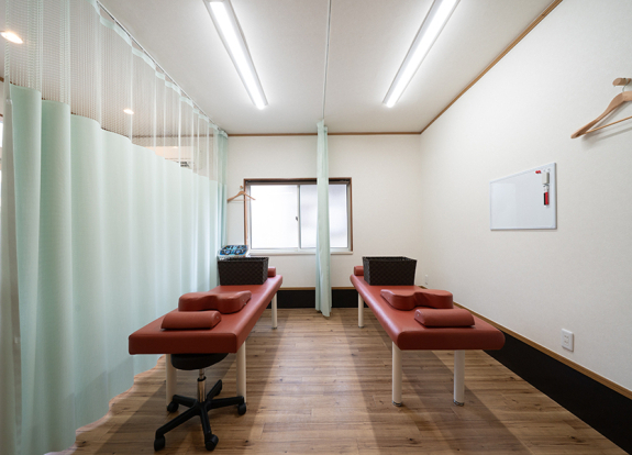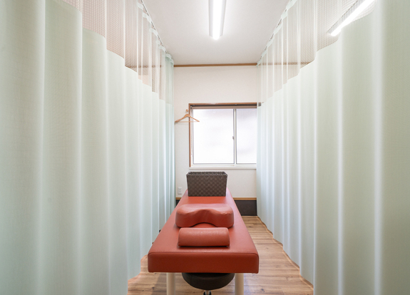 施術スペースはカーテンで仕切られているため、周囲の目を気にせず相談や施術を受けられます。
