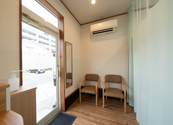 カーテンで仕切られた施術スペースやベビーカーの乗り入れ可能な広さもあり、小さなお子様連れの方にも配慮されています。